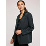 Add a touch of flair with the Dione Blazer, featuring a smooth satin feel in a stunning dark green shade. Perfect for holiday gatherings, its sleek texture and rich color will keep you shining all season long.