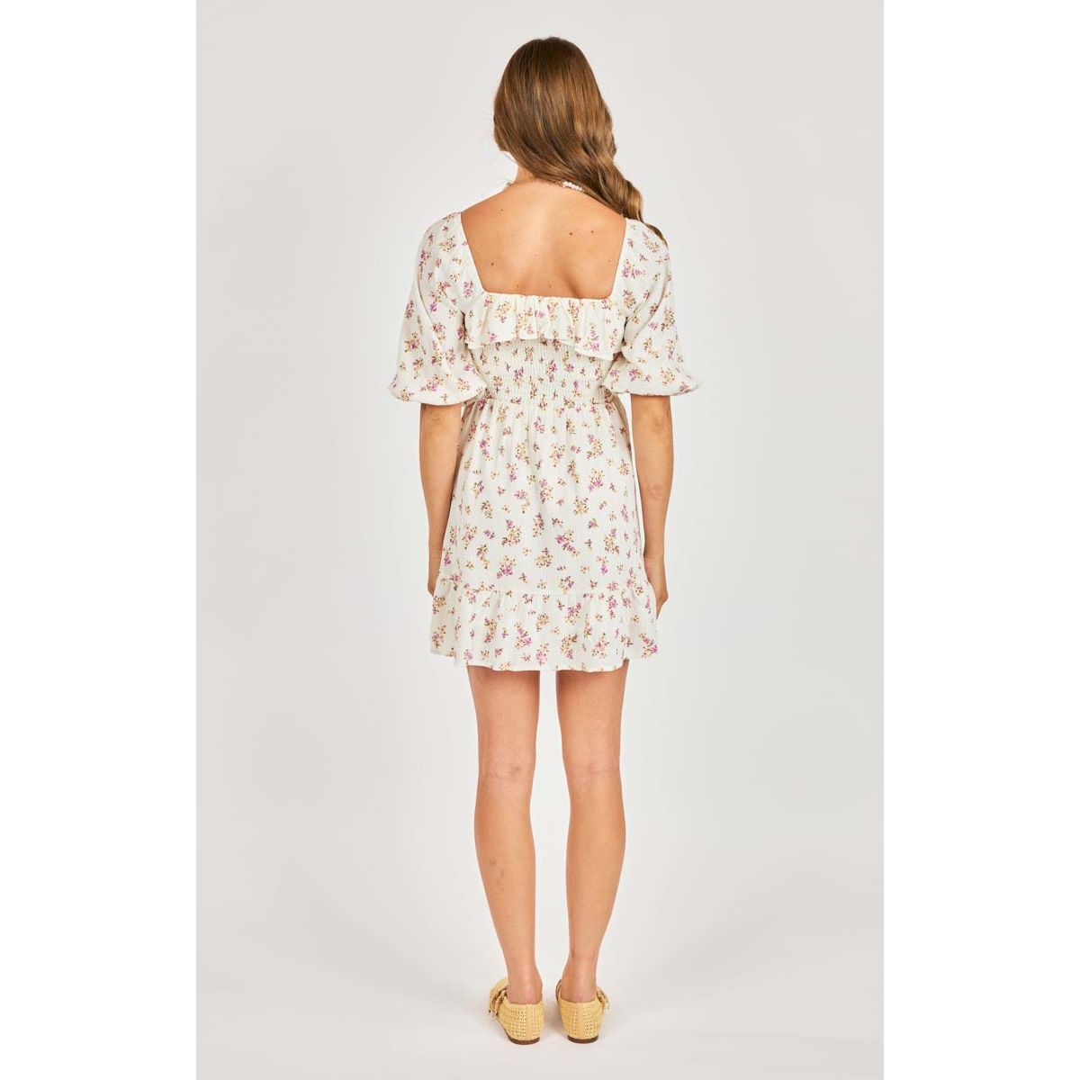 Sadie & Sage - Bouquet Smoked Mini Dress in White Multi