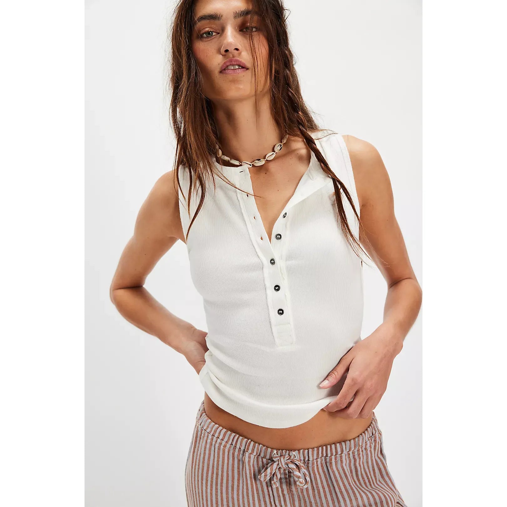 It doesn’t get more essential than this classic tank from We The Free featured in a henley design and soft cotton rib for endless ways to wear.