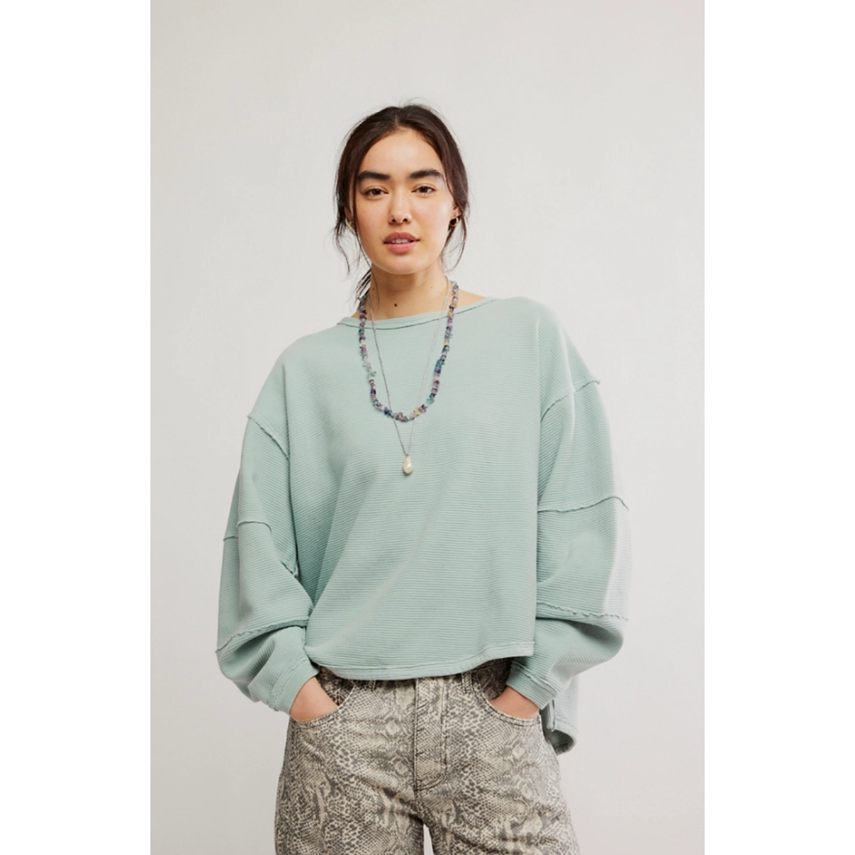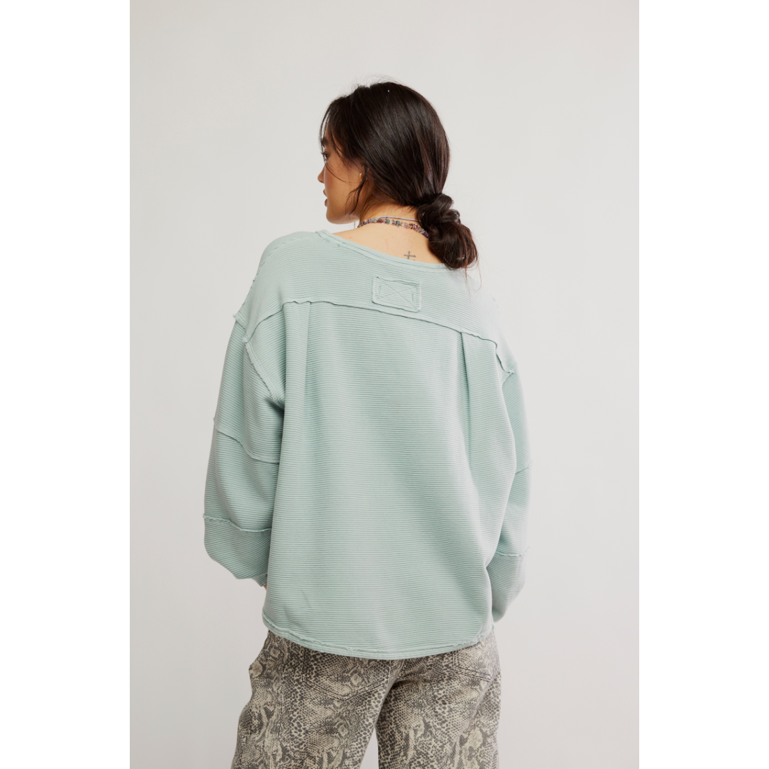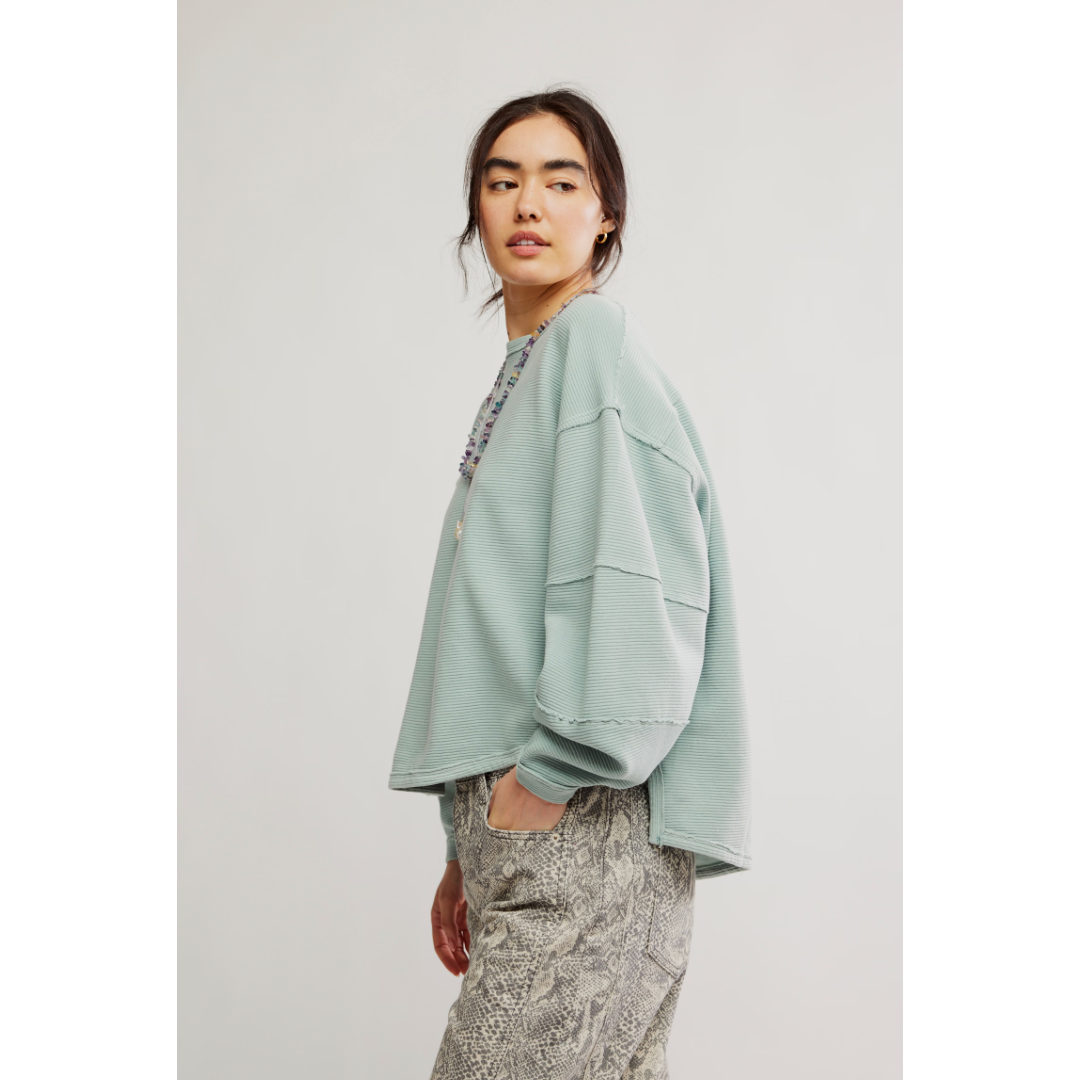 An elevated take on the classic tee, this long-sleeve from our We The Free collection features a ribbed fabrication and slouchy silhouette with defined seams and a scoop-neckline.