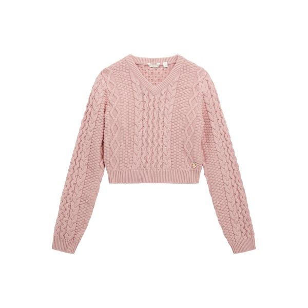 Guess - Girls V-Neck Cable Sweater in Beloved Pink