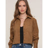 The Castalia Top is a classic, cropped, button down shirt. It has a relaxed fit and is made from a super soft, faux suede. Wear it open over a tank or closed with a pair of high waist jeans.