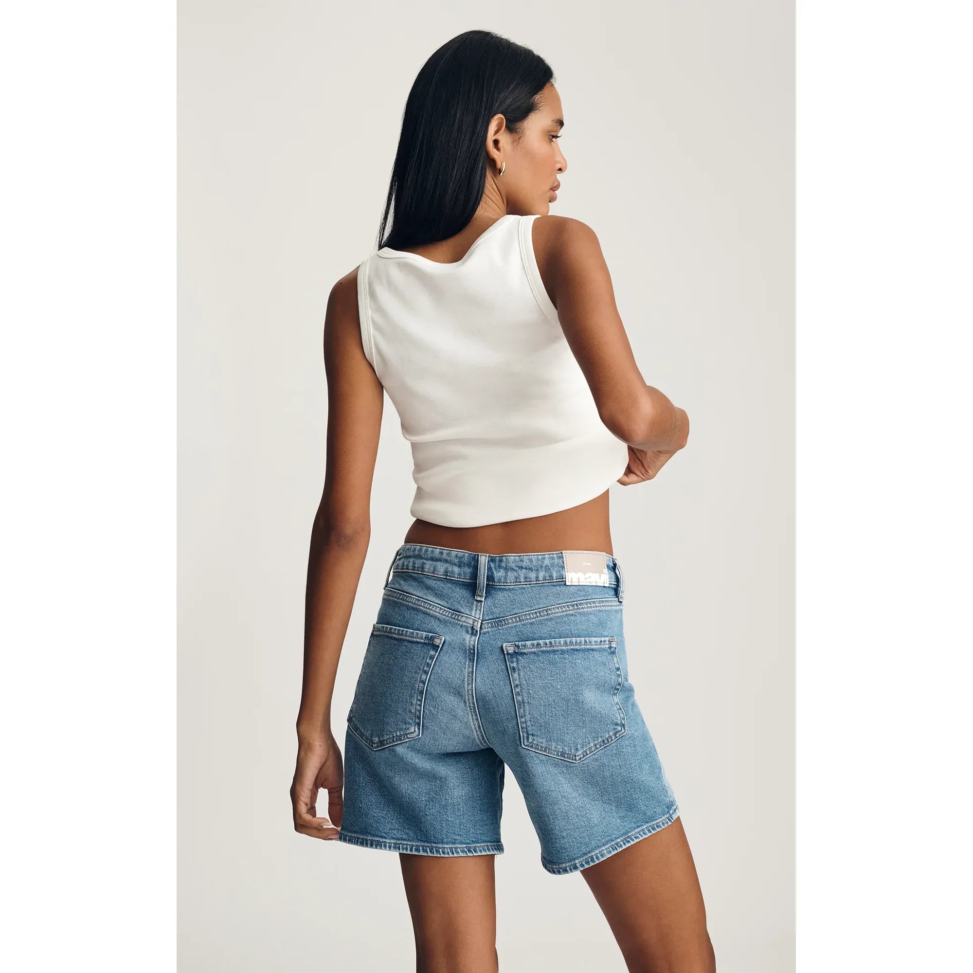 Heidi Long Shorts have a relaxed shape with a high rise and longer cut, designed for a casual, off-duty feel all season. This pair features a lived-in light blue wash.