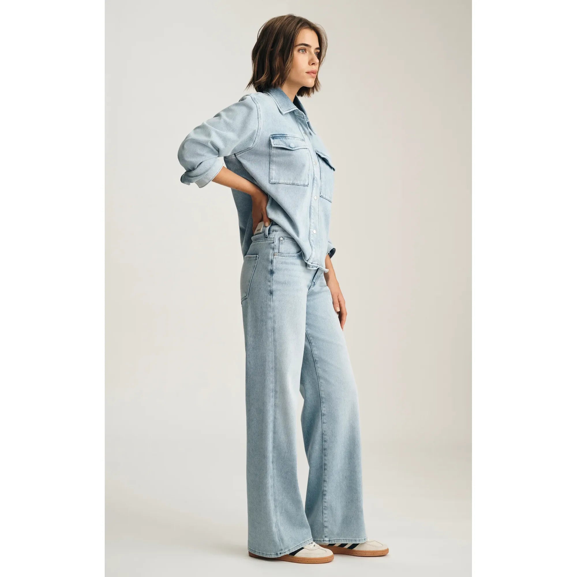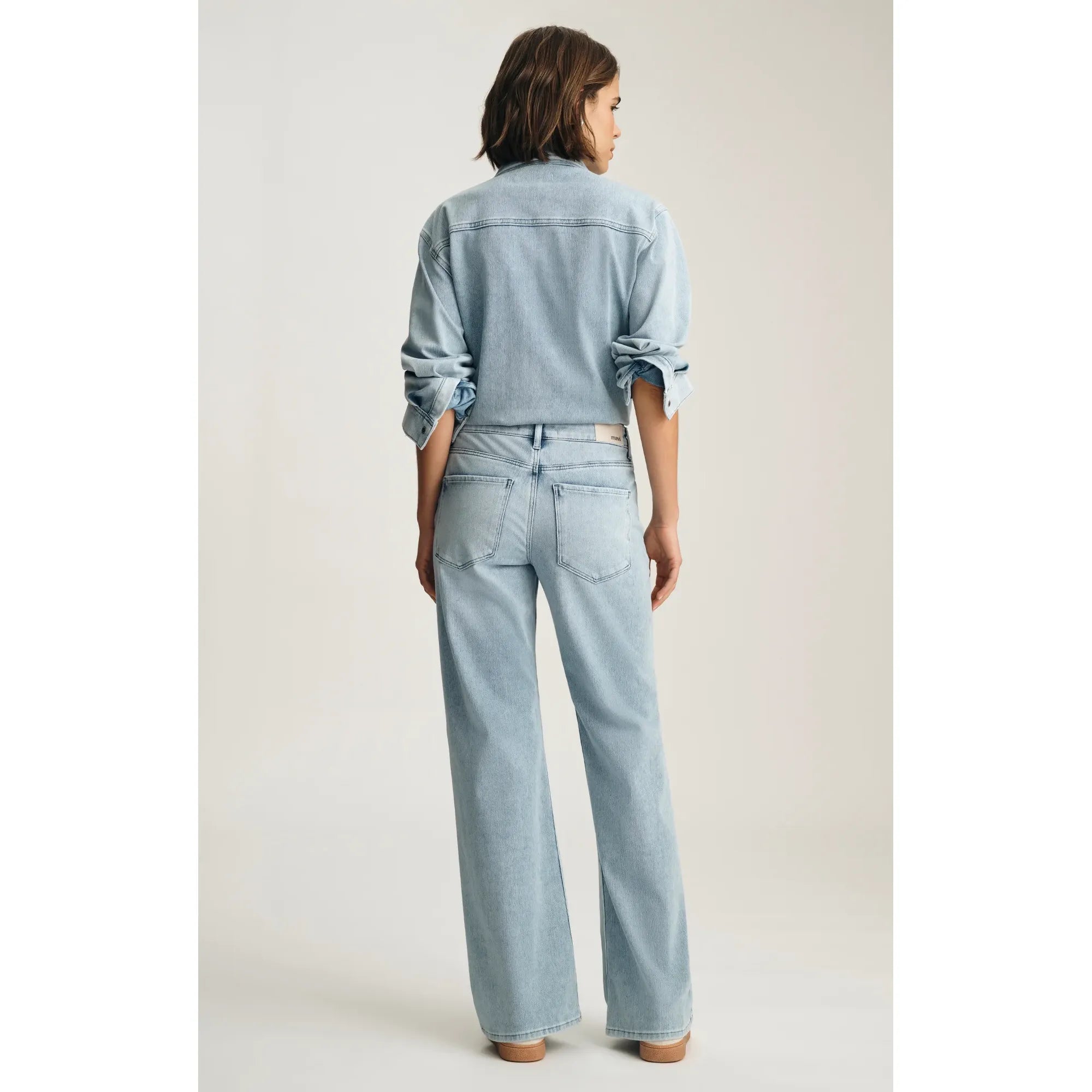 A relaxed wide leg with an easy mid rise, Sabrina is effortlessly flattering from hip to hem. This pair is finished in a lived-in light blue wash. Style with Tia for a matching set.