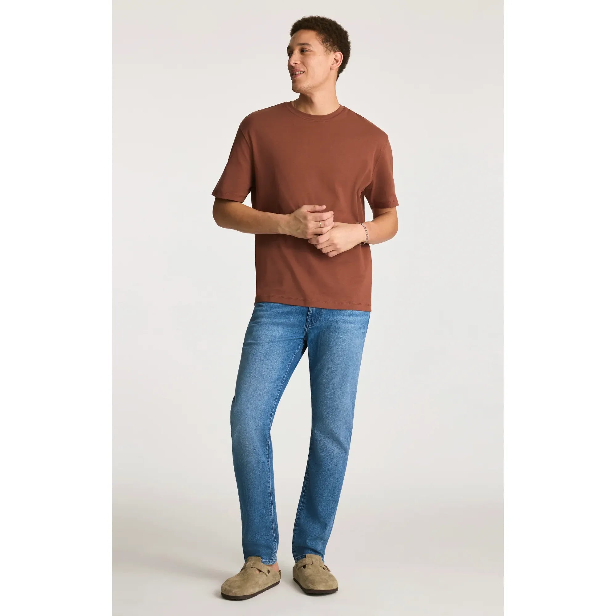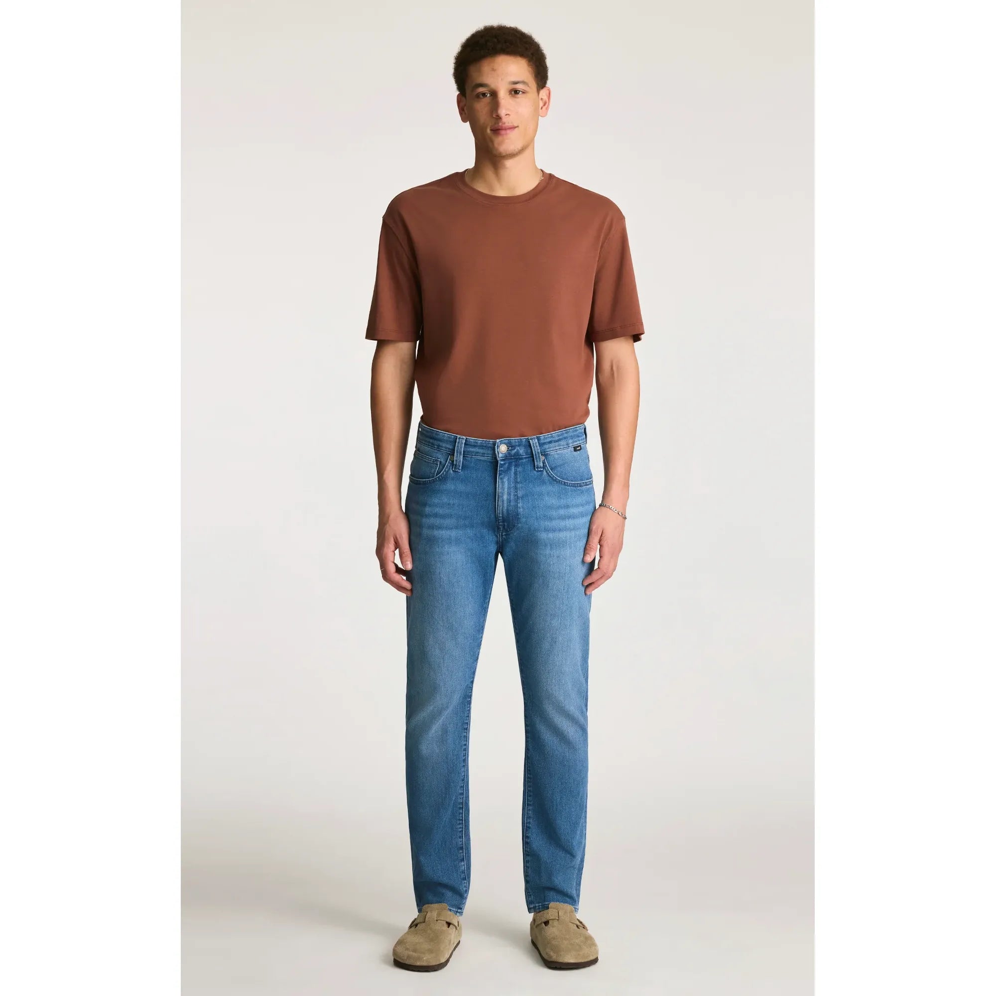 The perfect blend of a slim and straight leg. Marcus has a versatile shape, designed with a comfortable regular rise that runs straight throughout the hip, thigh, and leg opening. This pair comes in a medium blue wash with subtle fading.