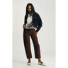 Nica features a trendy barrel leg silhouette with a high-rise waist. This contemporary fit offers a unique shape that's slightly wider at the thigh and tapers towards the ankle, providing a modern and stylish look.