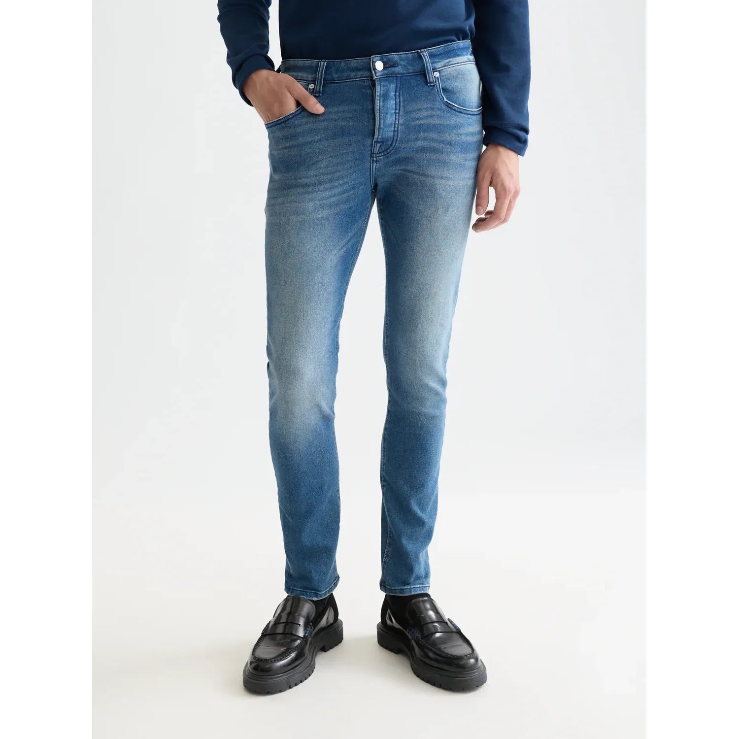 Expect unmatched versatility in our Essentials Ralston regular slim jeans in Abstract Blue. Their regular slim fit is a testament to timeless appeal, paired with a hue that serves as your daily wardrobe's cornerstone.