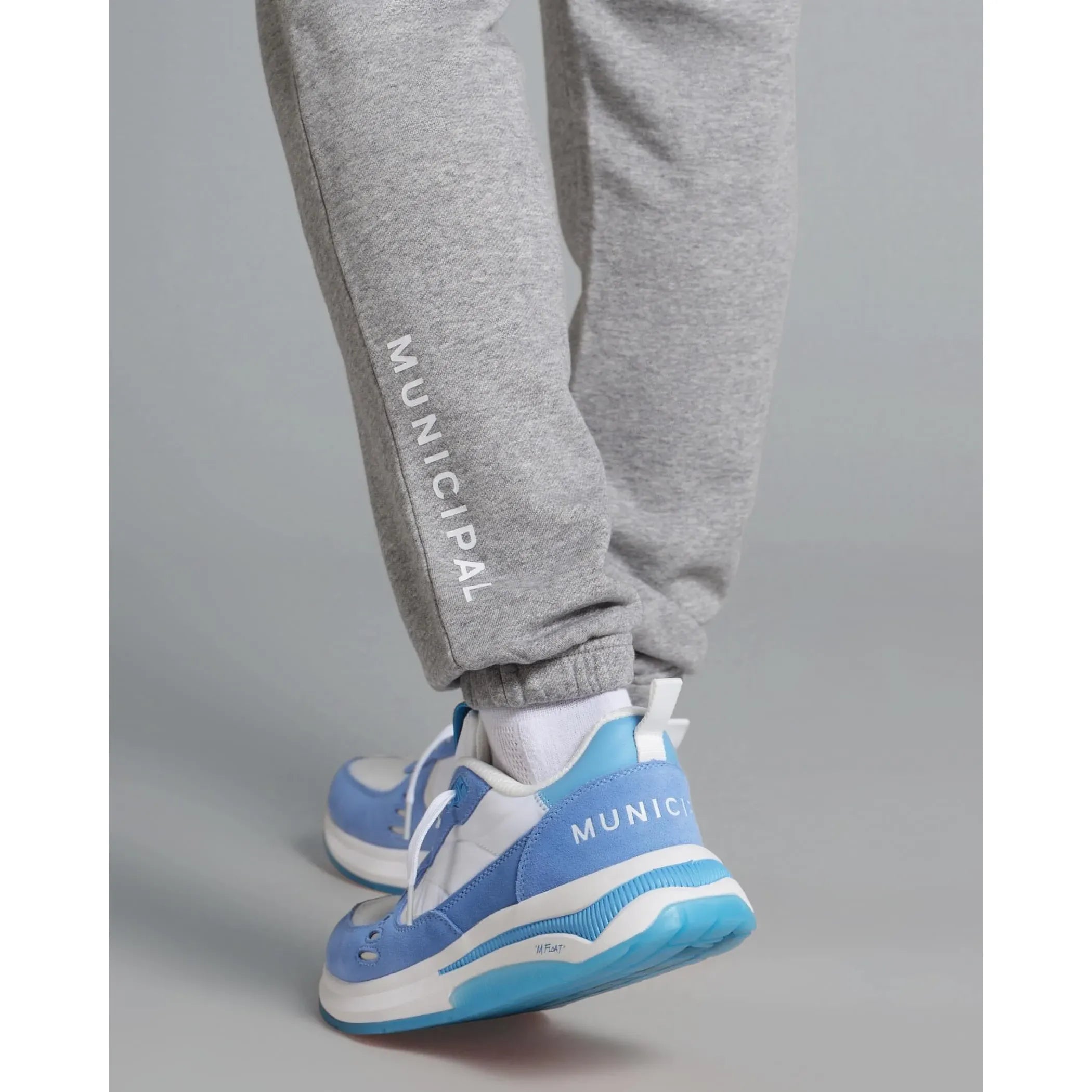 • Screenprinted MUNICIPAL logo on bottom left leg