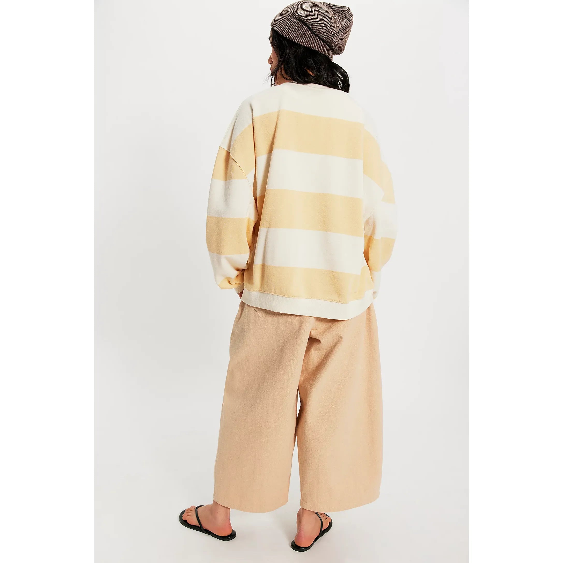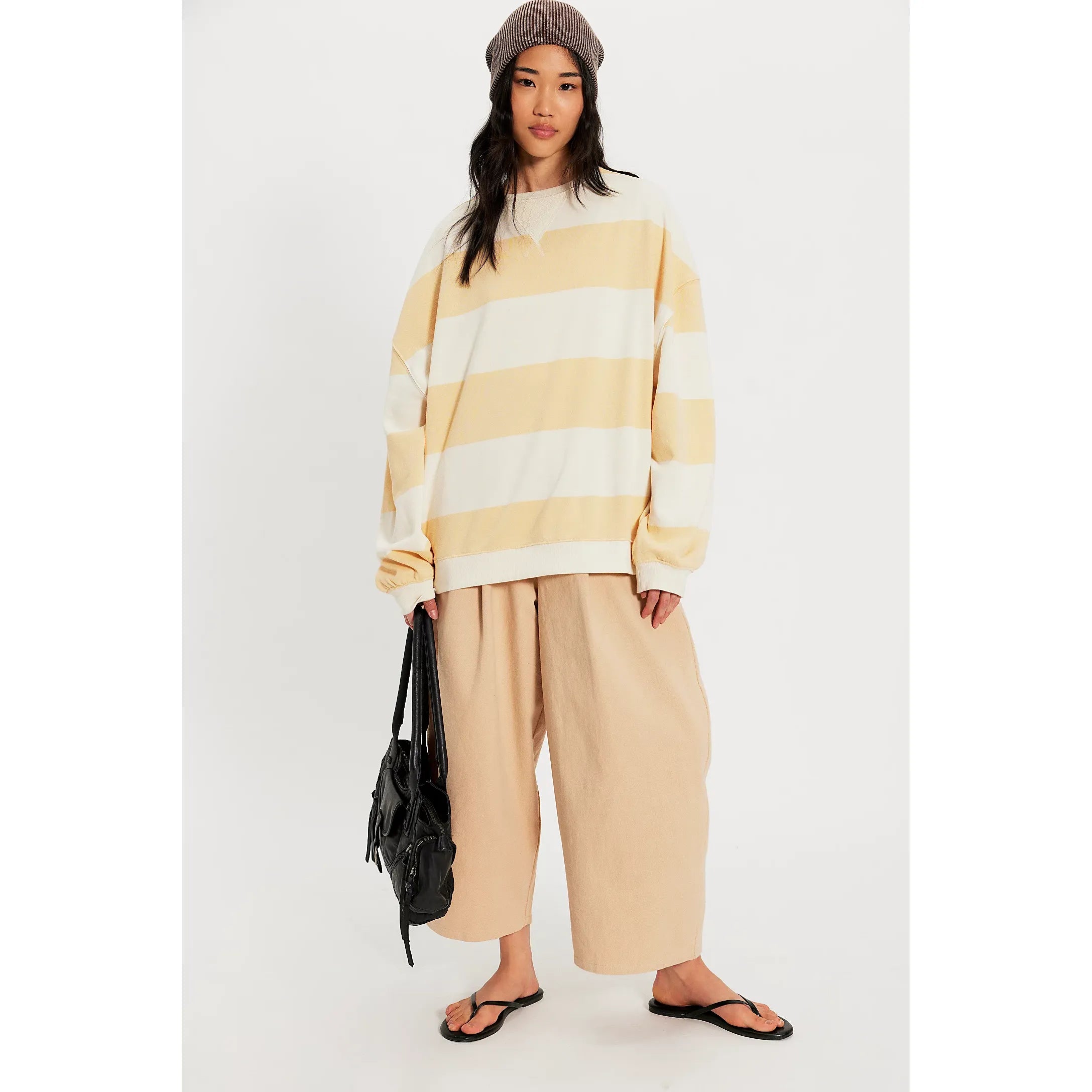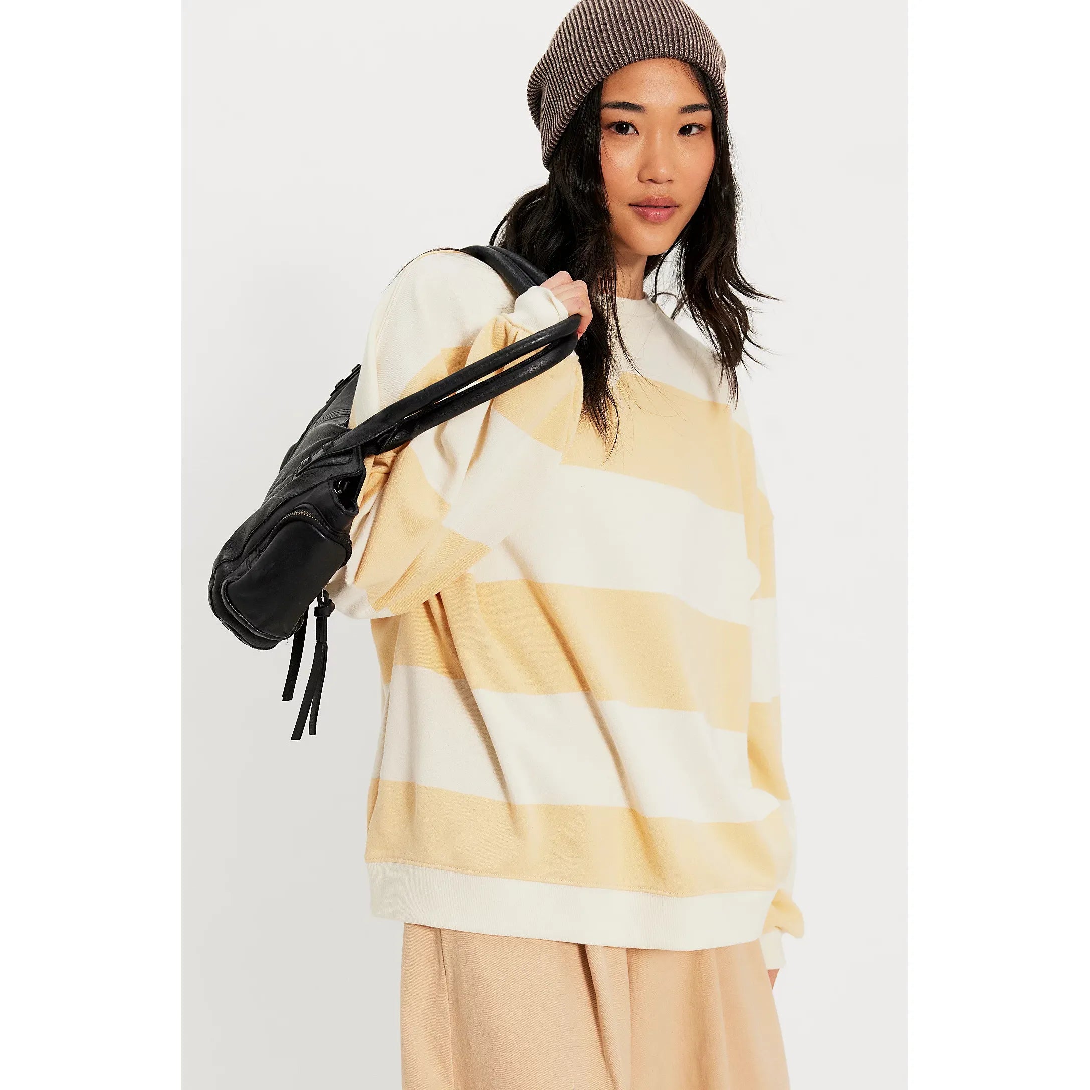 Free People - Classic Striped Oversized Crewneck in Apricot Combo