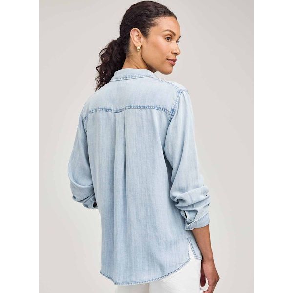 This one’s such an easy, go-to shirt. It’s been specially washed for that dimensional, slightly lived-in look that I love. You can wear it buttoned up or open as a lightweight layer. Either way, it really works.