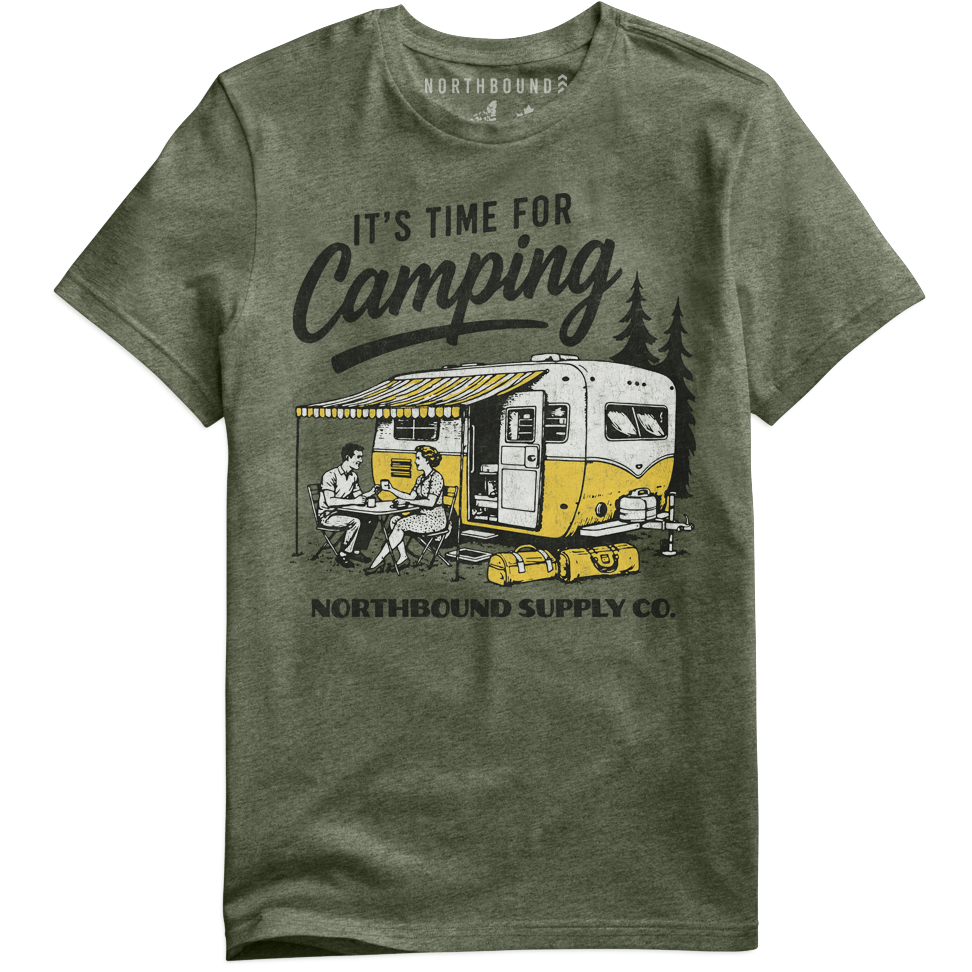 Northbound - It's Time for Camping T-Shirt in Military Green Heather