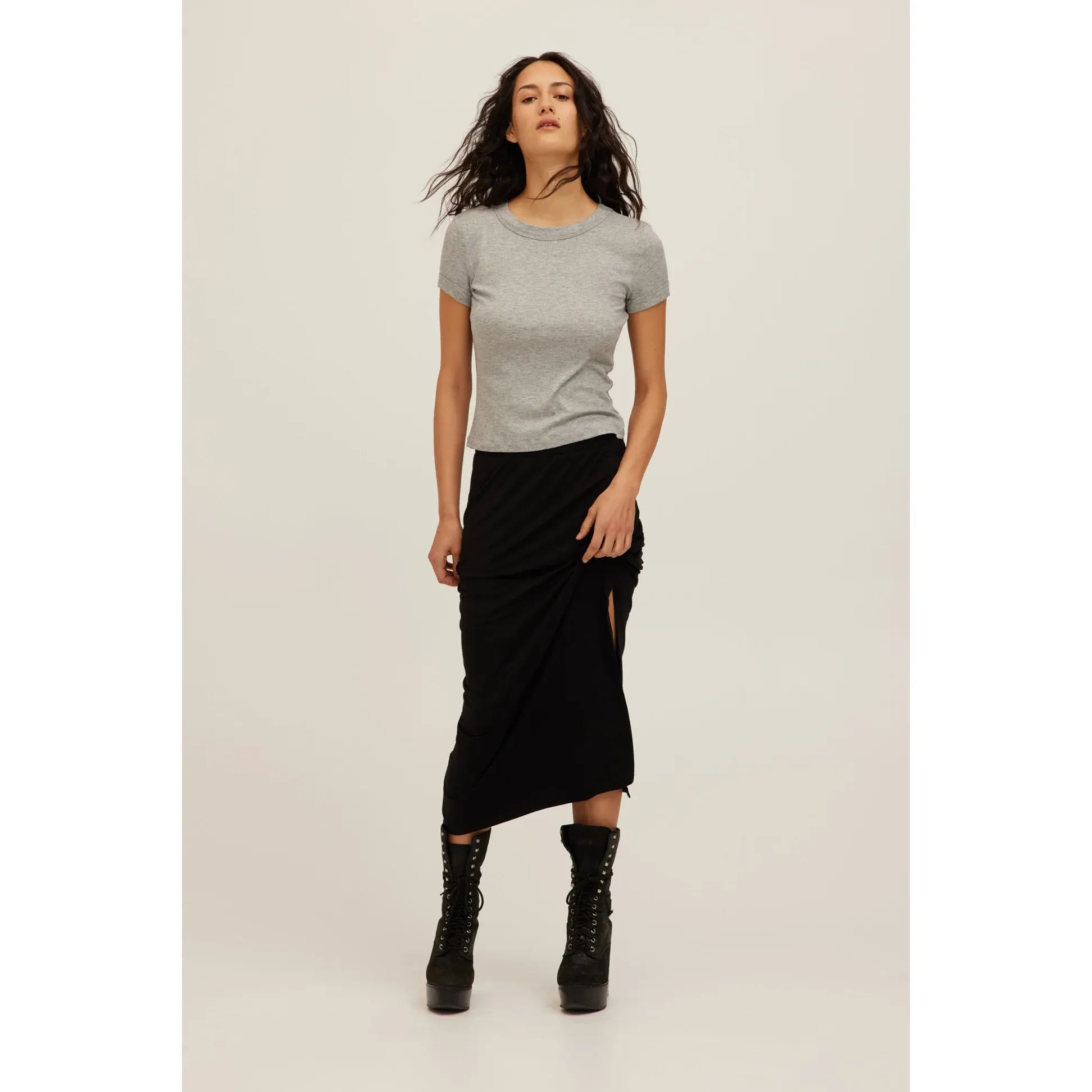 Project Social T - Kota Ribbed Baby Tee in Heather Grey