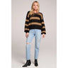 The Mimi Black Sweater features a wide stripe motif and oversized sleeves gathered at the wrist, creating a relaxed yet refined silhouette.