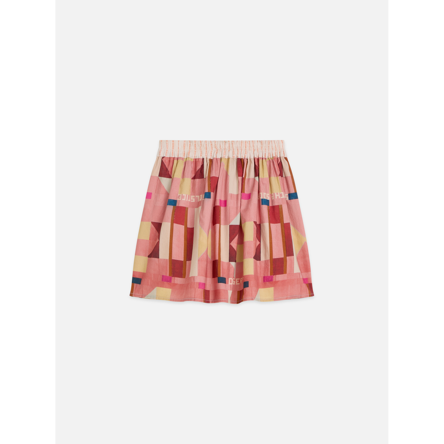 Printed seersucker skirt with subtle texture, shaped into a refined, easy silhouette.