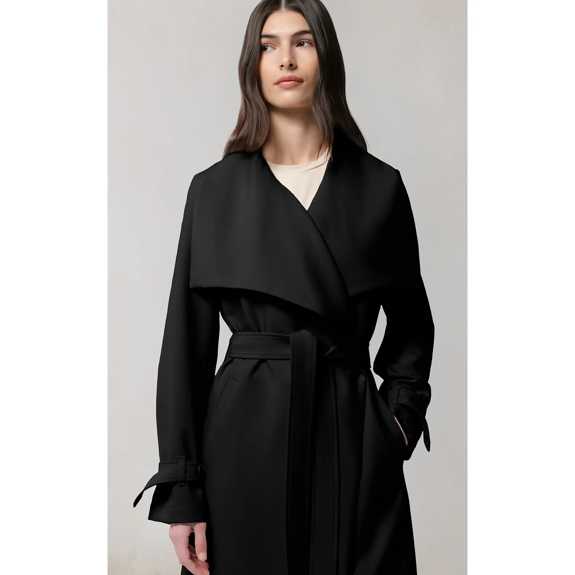 Olivia by Soia & Kyo brings a soft structure to cool days. With its draped cascade collar and adjustable sleeve belt, this wrap coat is all about tailored ease. A detachable belt, hidden collar button, and half-back lining add both polish and function.