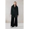The Elsa features a large shawl collar with hidden closure, angled welt pockets, and box pleat back detail. Crafted from a wool blend and fully lined, it offers straight fit elegance for chilly days.