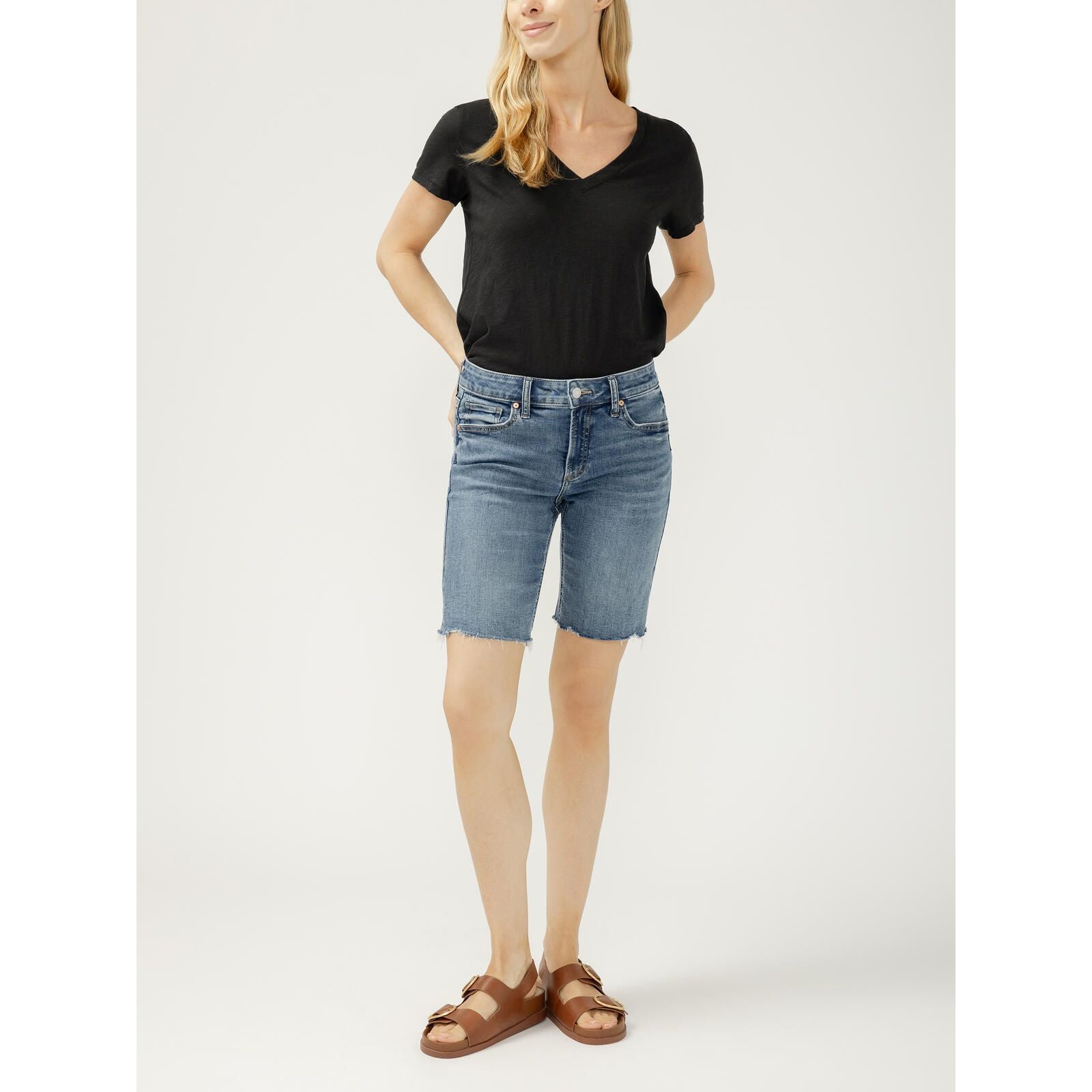 Meet Elyse, our most comfortable curvy fit jeans. These women’s mid rise shorts are designed with a little extra room in the hip and thigh to perfectly hug your curves and feature an eased waistband to keep the midsection comfy, preventing digging even when sitting.