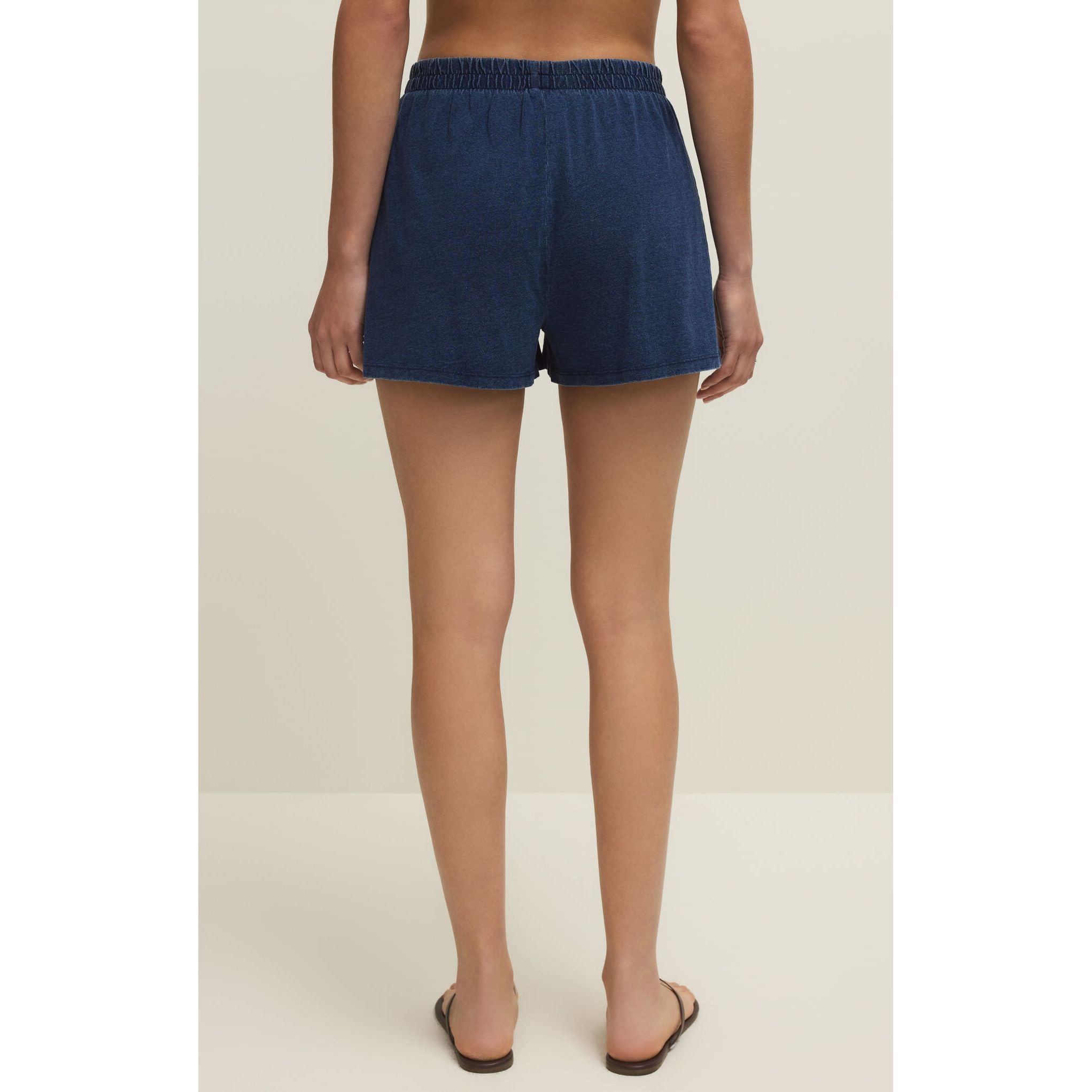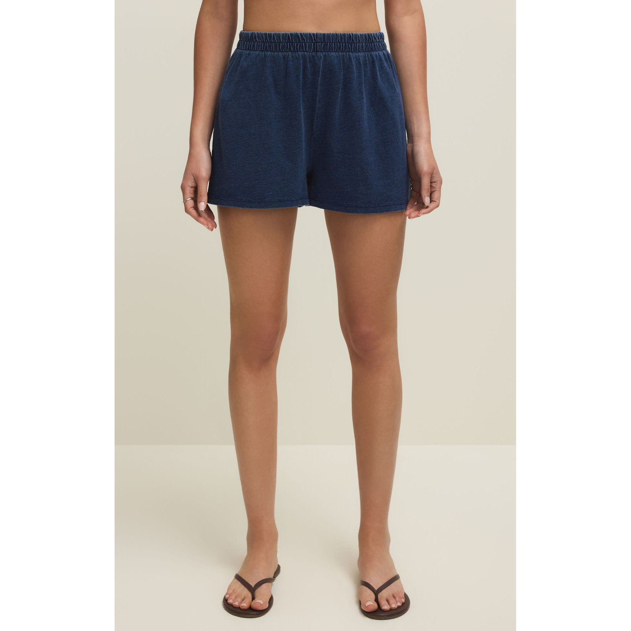 Kicked-back and cool, this knit denim French terry short has a lived-in look and feel. The contrast drawcord at the high-rise waist gives a little sporty twist, while the slash pockets keep it functional.