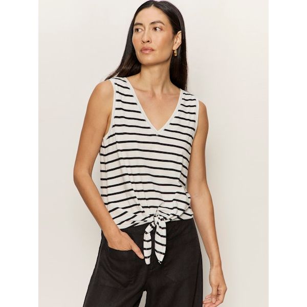 Sanctuary - V Neck Tie Tank in Black/White Stripe