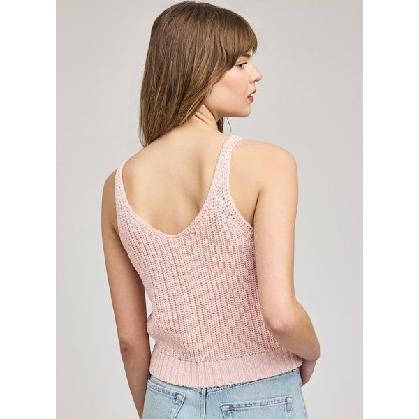 The Lizzie tank is made of a soft yarn in a half cardigan stitch. The flattering front and back v-neckline is perfect for everyday wear.