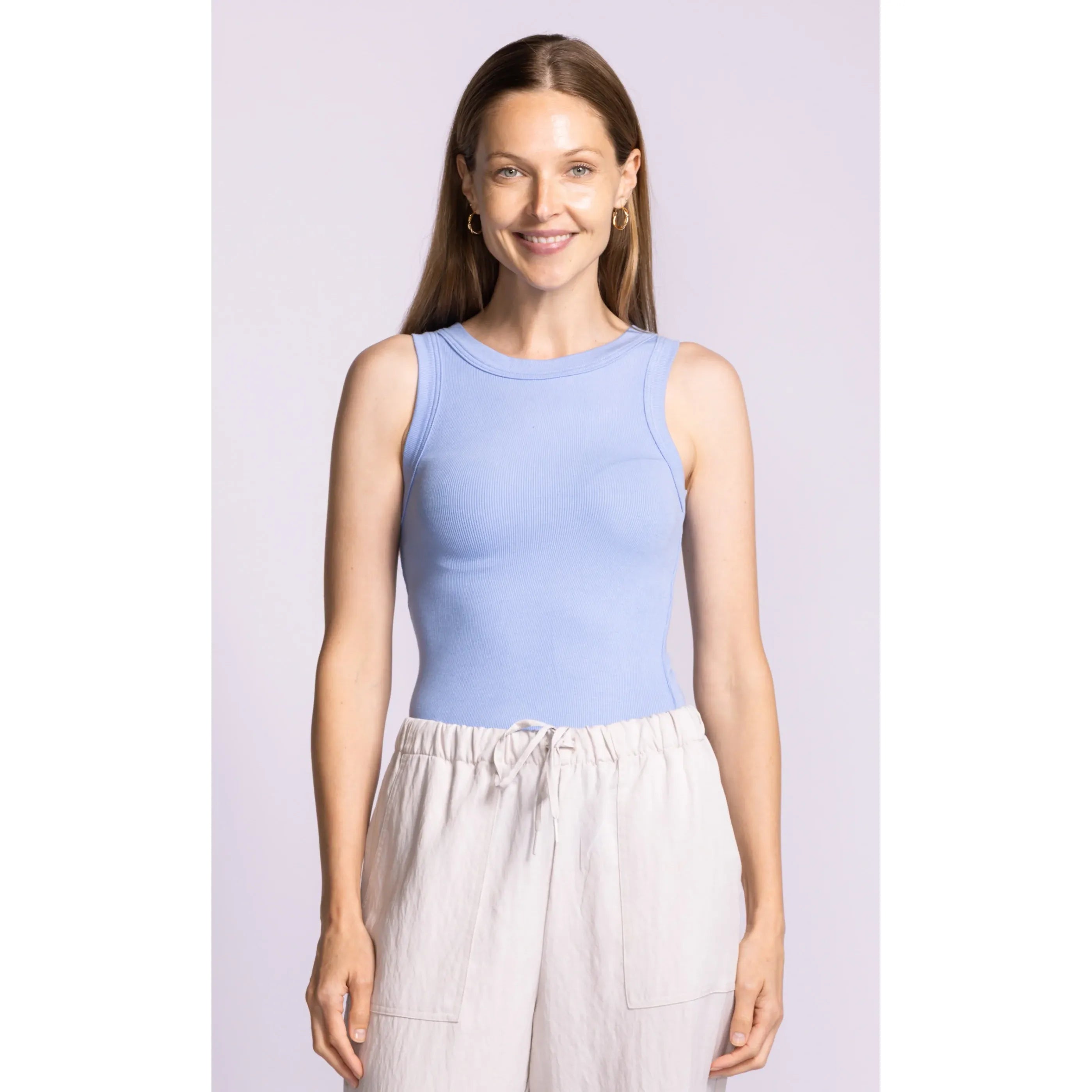 The Danika Top is a classic ribbed knit tank top and an easy everyday essential. Designed for versatility, this knit tank layers effortlessly under a button-up shirt or styles on its own with jeans for a casual, polished look.
