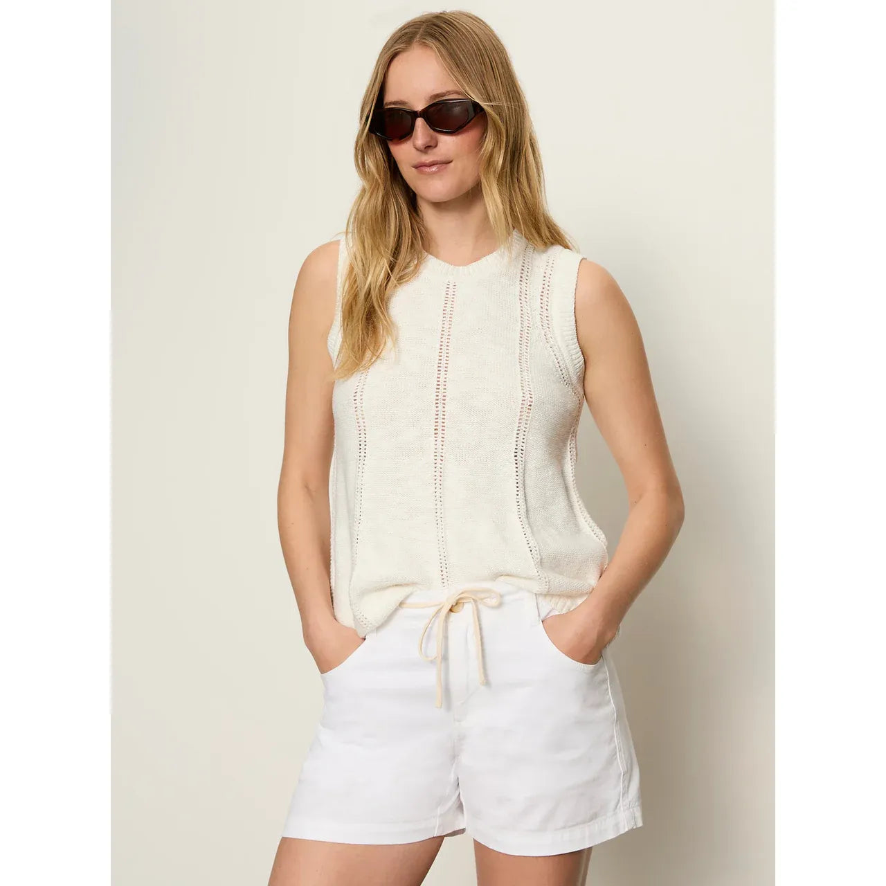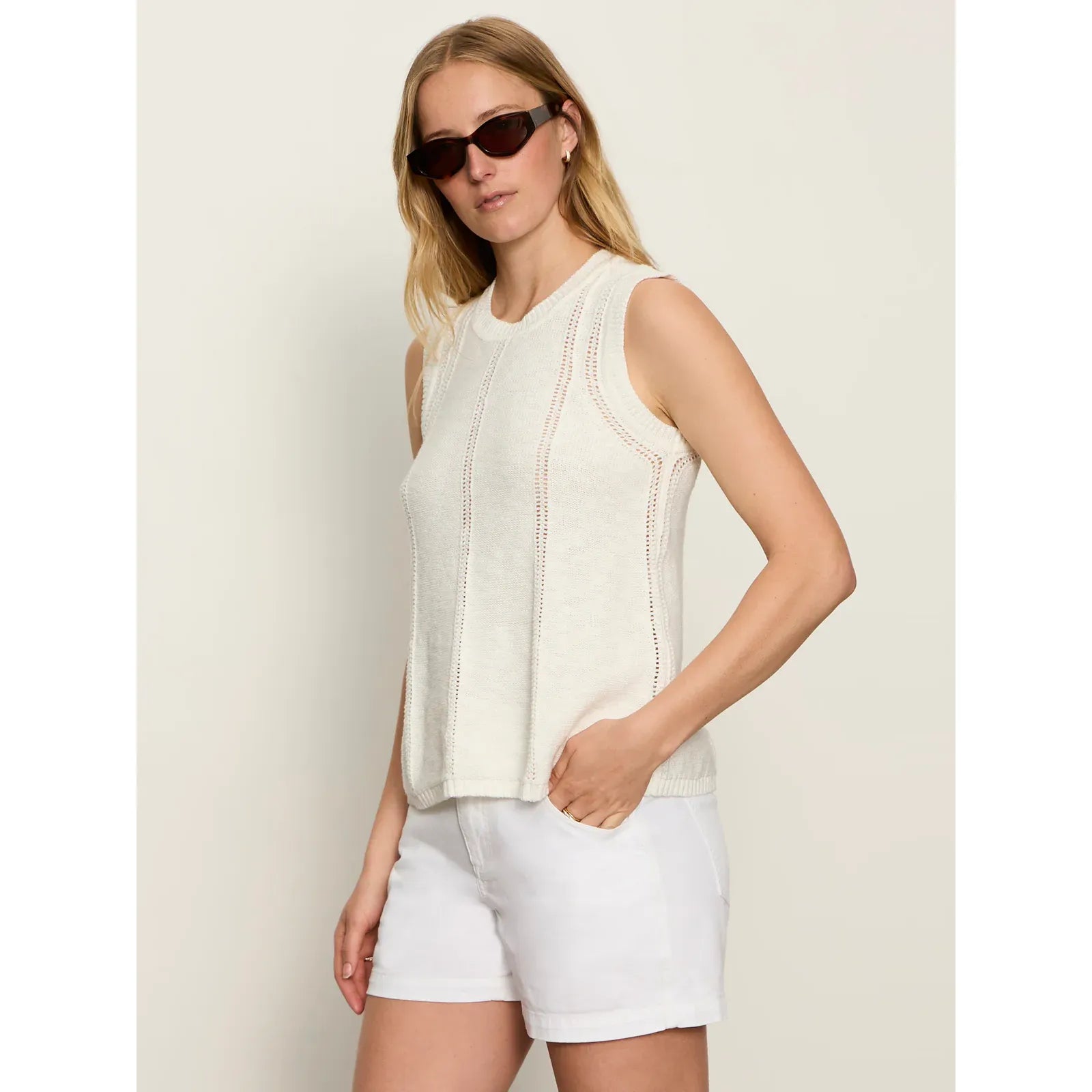 Sanctuary - Easy Pointelle Knitted Tank in Chalk