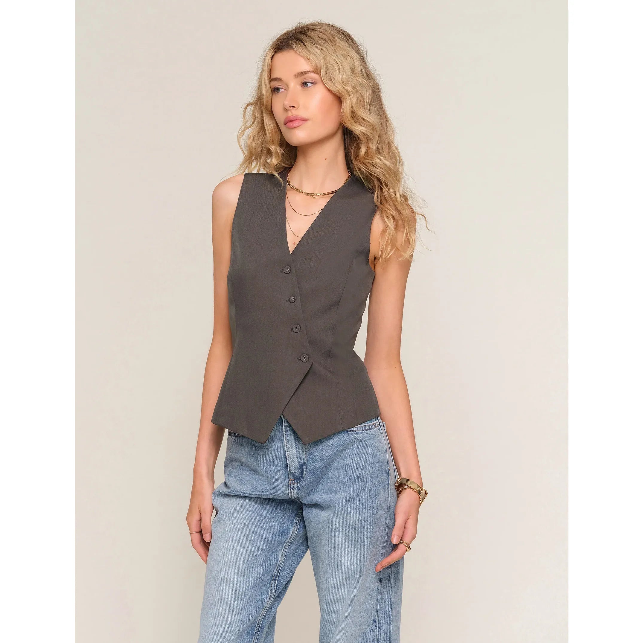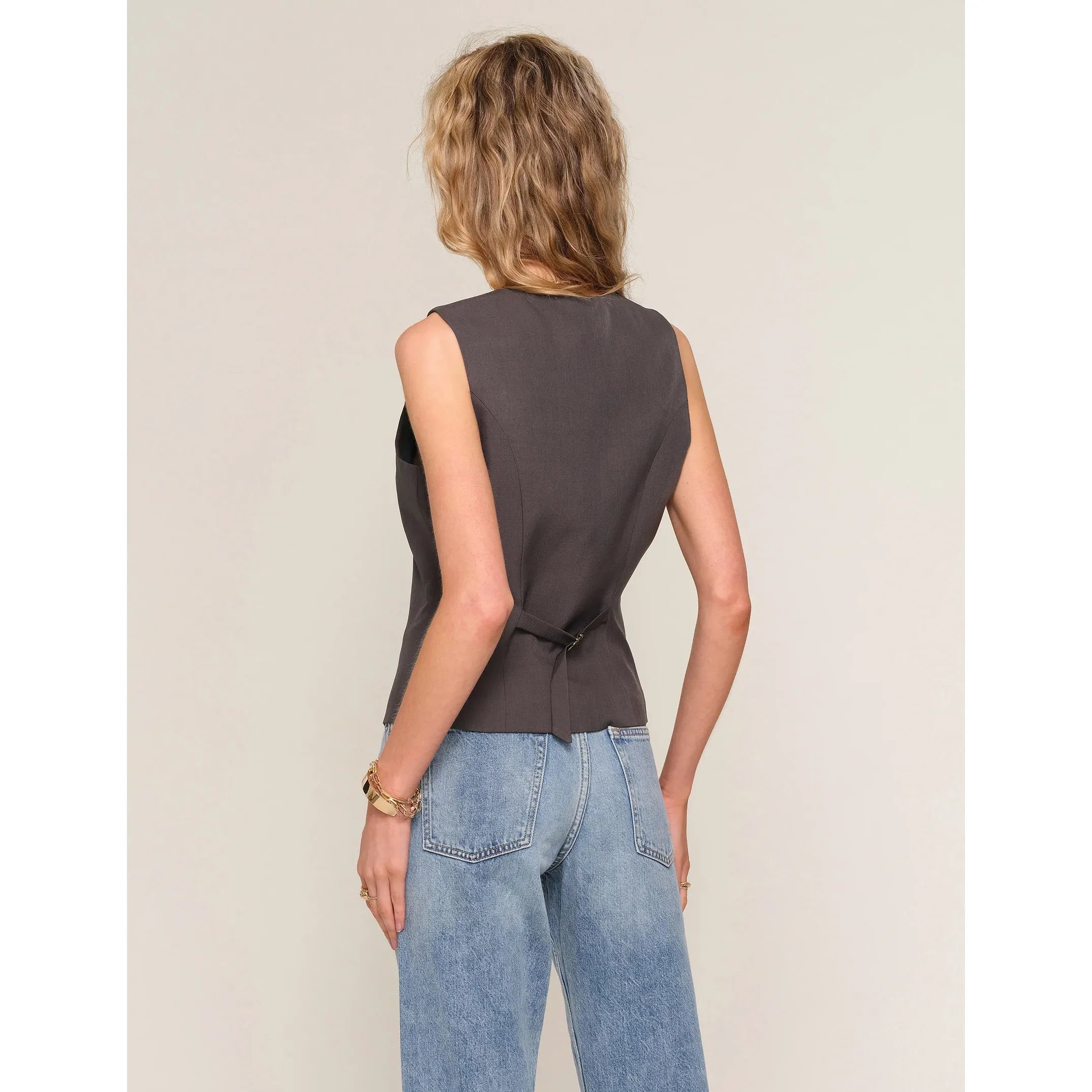 The Bandie Vest has become a Heartloom favourite, made from a cool, soft, tailoring. It features a v-neck, pinched waist and an asymmetric placket. It pairs perfectly with your favourite vintage jean or the Aro Pant.