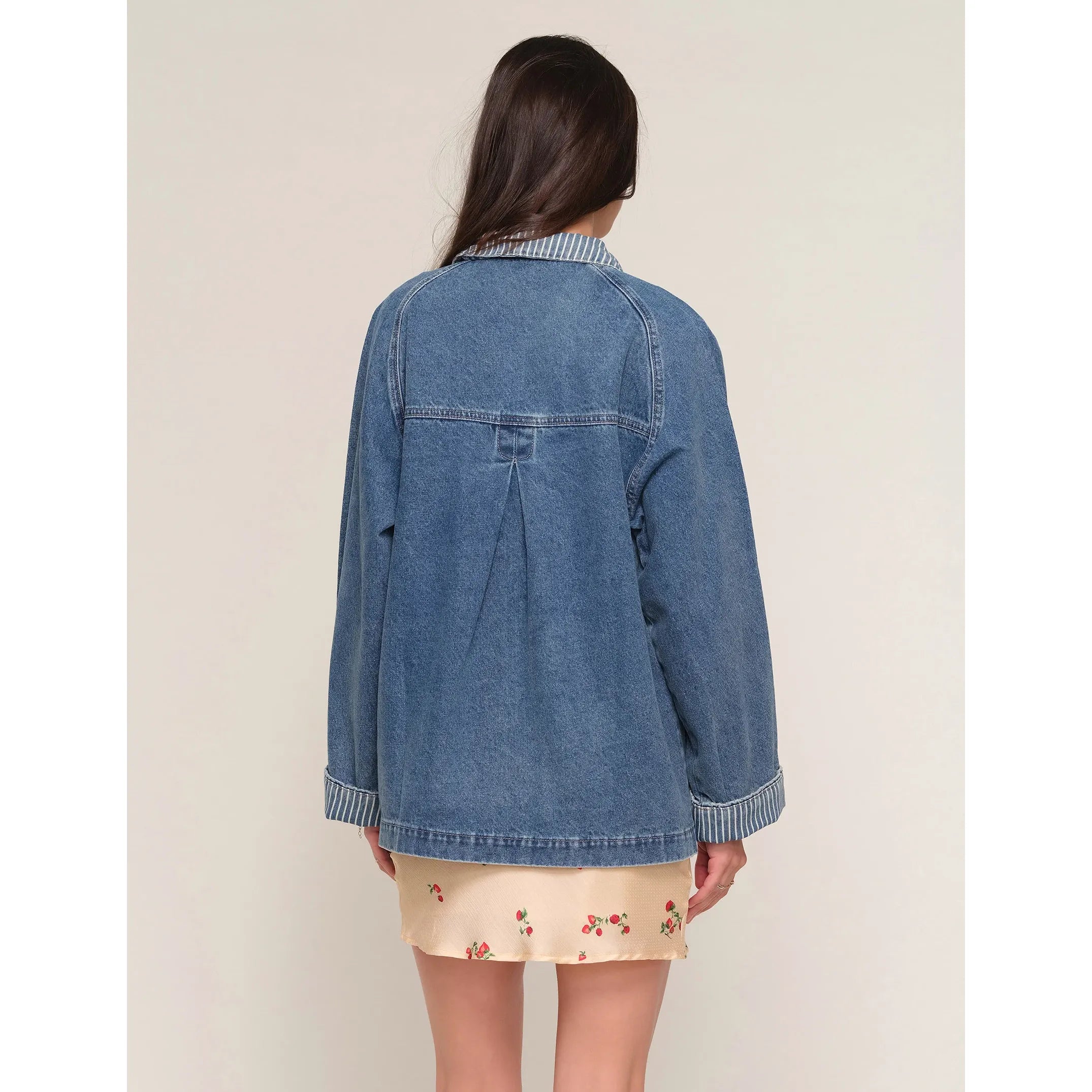 The Conor Jacket is a cool, relaxed fit jacket. It has utility patch pockets, a center zip and a contrast pinstripe collar
