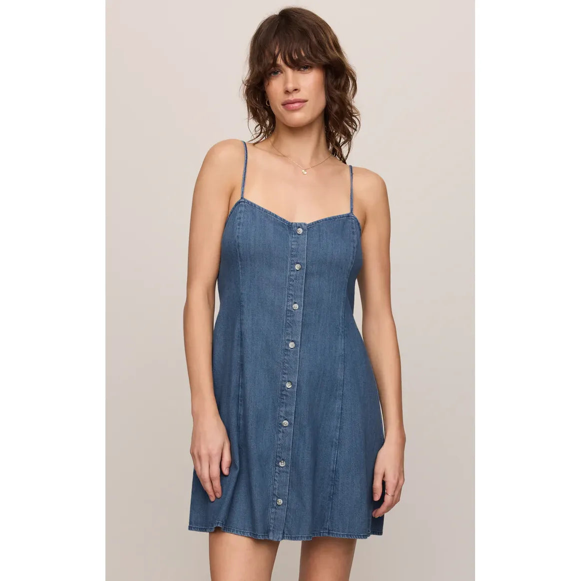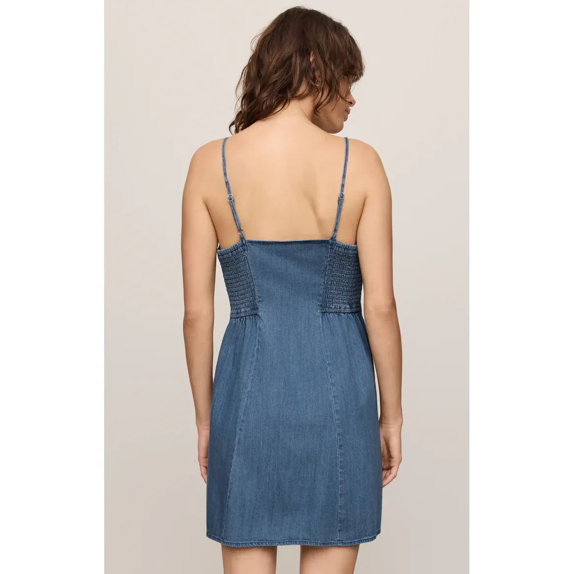 Made of lightweight denim, this cotton blend dress keeps things simple yet stylish. Its partly smocked bodice and adjustable straps ensure the perfect fit while its flowy feel keeps you comfortable.