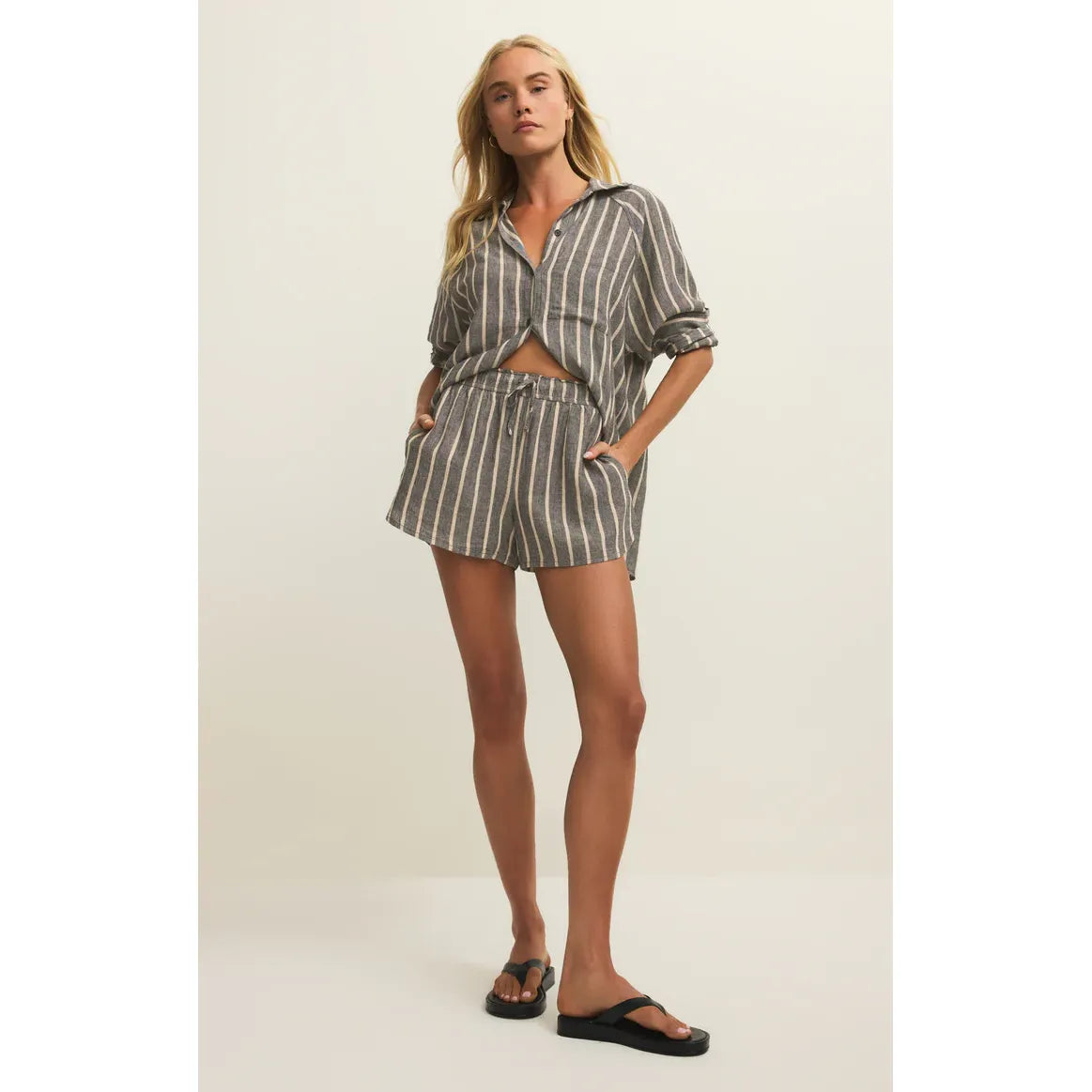 Made of a soft linen blend, these stripe shorts bring a stylish ease to any look. A daily essential, these comfy bottoms feature side pockets, an elastic waistband, and a lightweight feel. We like to pair it with a button up top for an effortless look.